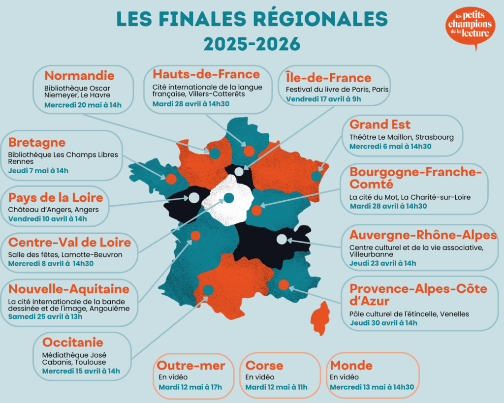 Une fois les finales départementales achevées, il est l’heure pour les lauréats de se rassembler lors des finales régionales. Se tenant chacune dans des lieux culturels du territoire, le partage et le plaisir de lire y sont mis à l’honneur !